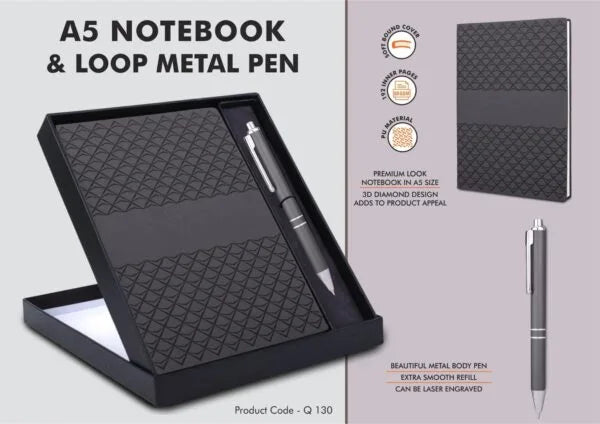 Regular price Rs. 220.00Sale price Rs. 220.00 Regular priceUnit price perSale Sold out– 2 pc Set of Notebook with pen– Gift set in hard board box packing– Elastic band holds pen in place– Multifunction A5 notebook in PU...