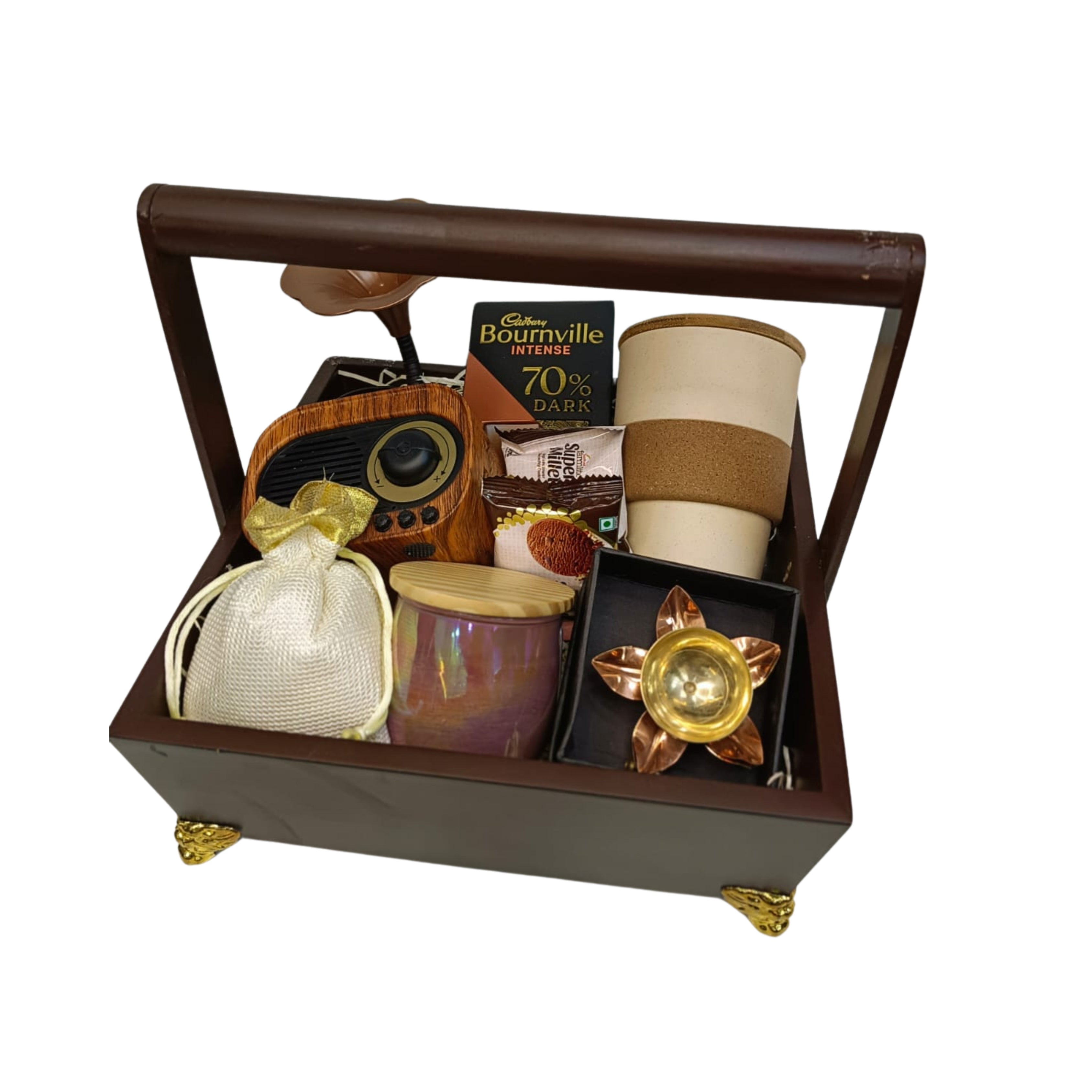 Regular price Rs. 2,499.00Sale price Rs. 2,499.00 Regular priceUnit price perSale Sold outThe Maharaja Luxe Celebration Box is a timeless hamper that blends royalty with indulgence. Featuring a vintage-style speaker, designer diya, ceramic cups, a radiant luxury candle,...