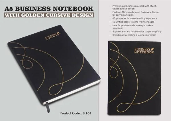 Regular price Rs. 389.00Sale price Rs. 389.00 Regular priceUnit price perSale Sold out– Premium A5 Business notebook with stylish Golden cursive design– Features Memorandum and Bookmark Ribbon for easy organization– 80 gsm paper for smooth writing experience– 176...