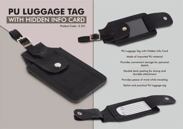 E351 – PU Luggage Tag with Hidden Info Card | Double back pasting