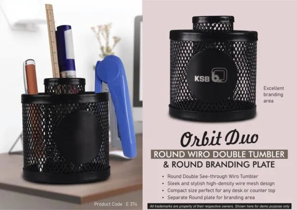 Regular price Rs. 61.00Sale price Rs. 61.00 Regular priceUnit price perSale Sold out– Orbit Duo is a pen stand with double tumbler design– Separate Branding Plate– Compact and sleek design– High density wire mesh tumbler– Excellent branding area...