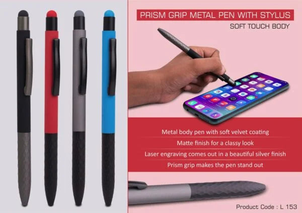 L153 – Prism Grip Metal body pen with Stylus | Soft Touch Body