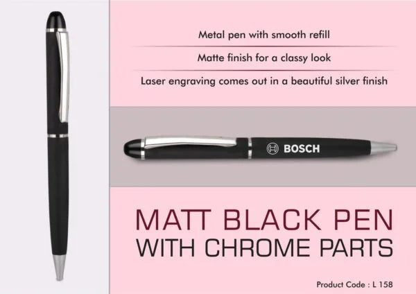 L158 – Matt Black metal Pen with Chrome Parts
