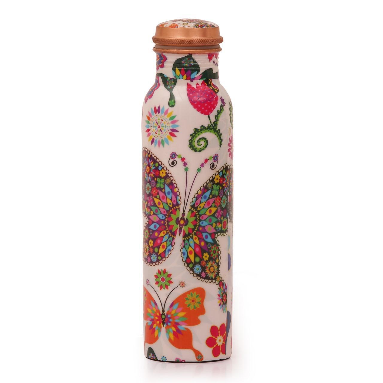 Copper Water Bottle, 1L, Set of 1 -Butterfly