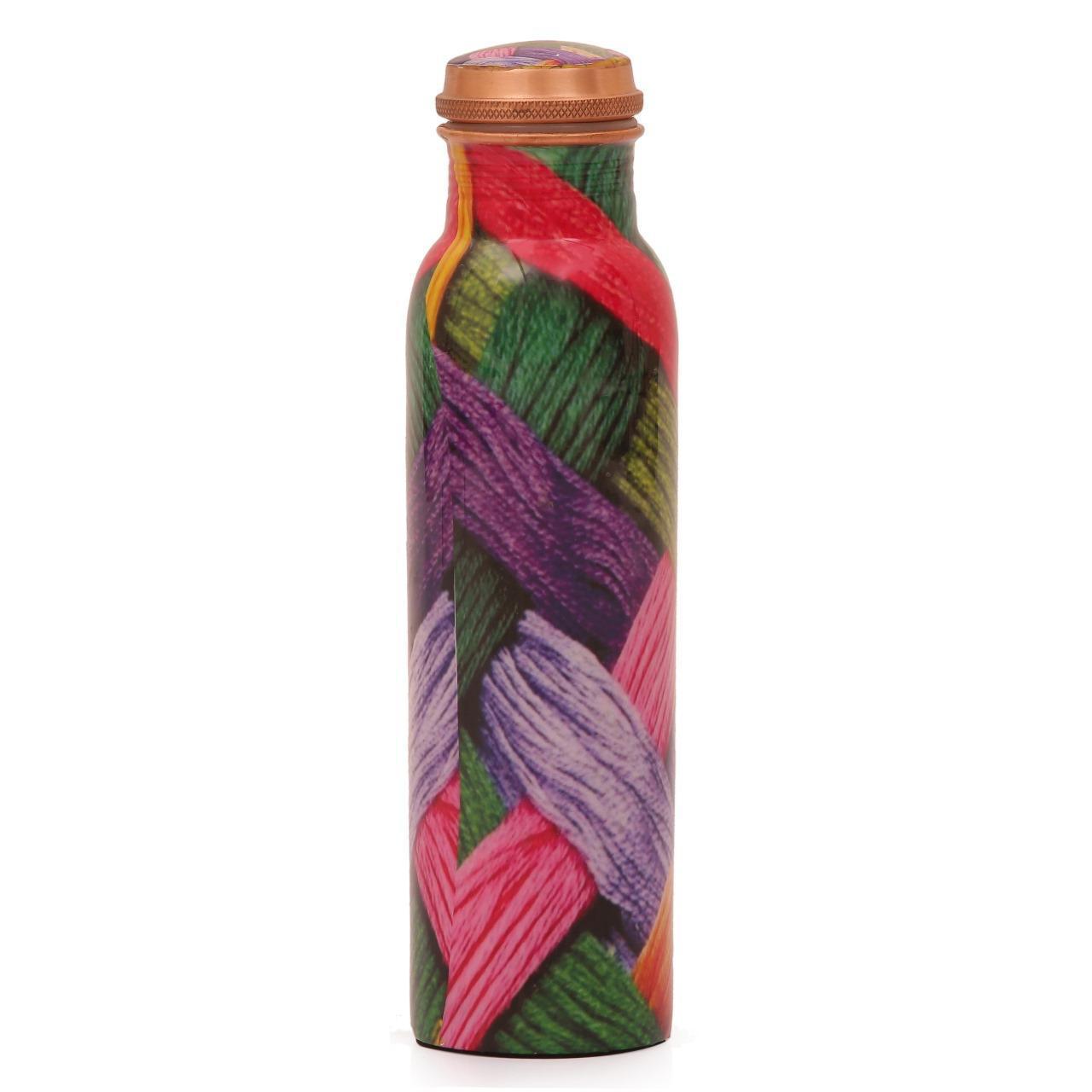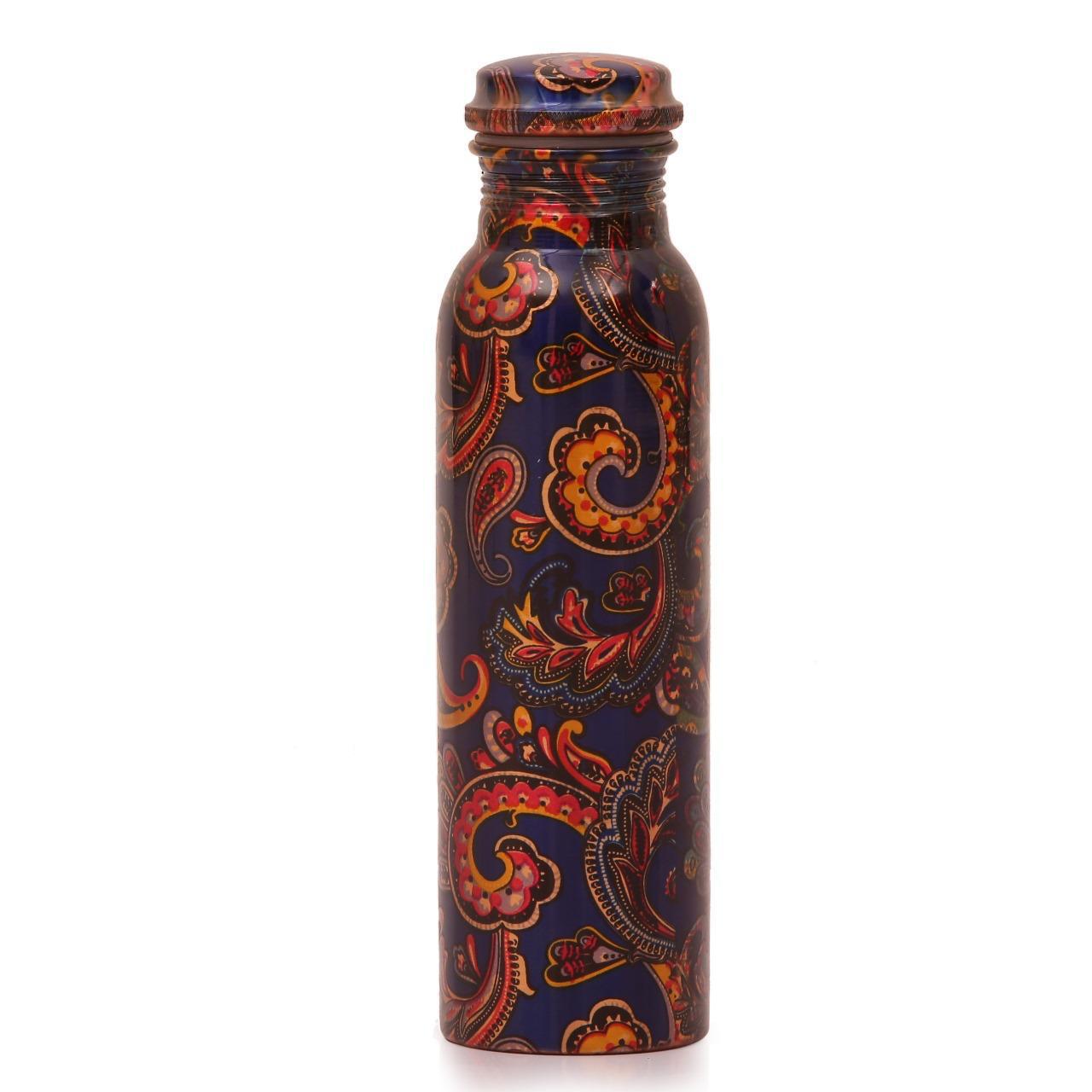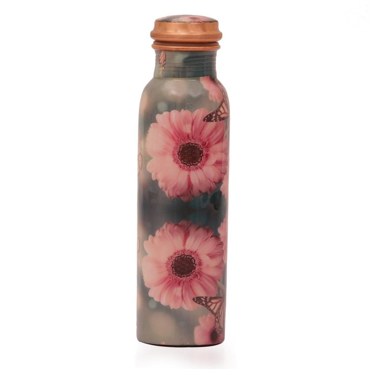 Copper Water Bottle, 1L, Set of 1 -Floral