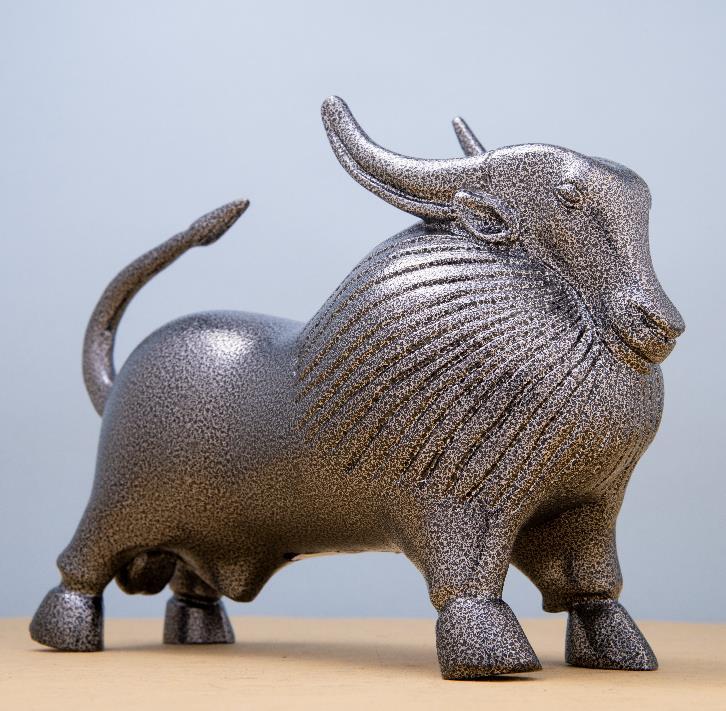 Handmade Resin Art Golden Horned Yak Table Accent Showpiece