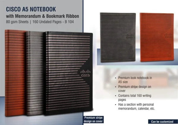 B104 – Cisco A5 notebook with memorandum & Bookmark ribbon| 80 gsm sheets | 160 undated pages