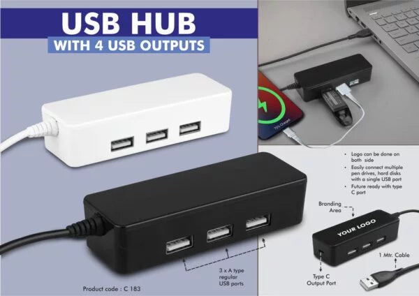C183 – USB hub with 4 USB outputs | Type C output port | 1 mtr cable