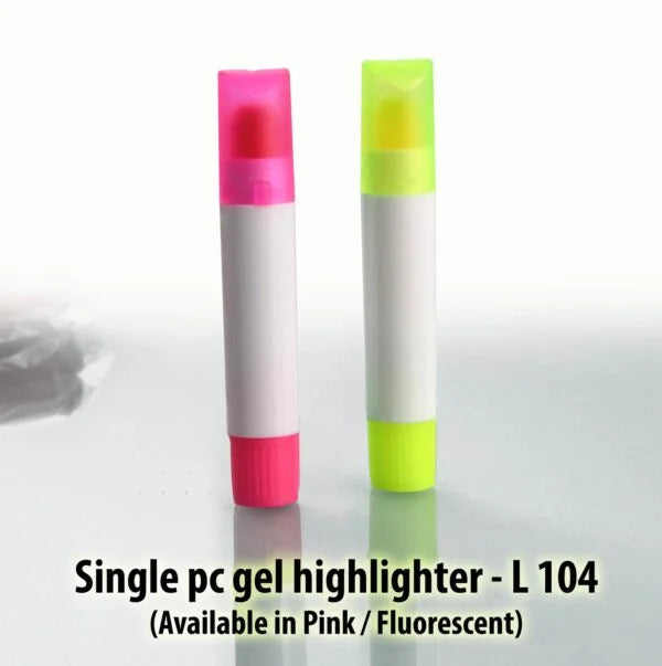 – Single pc gel highlighter- Just rotate the bottom ring to bring the highlighter out as you need more- 2 color highlighters: Pink and Yellow