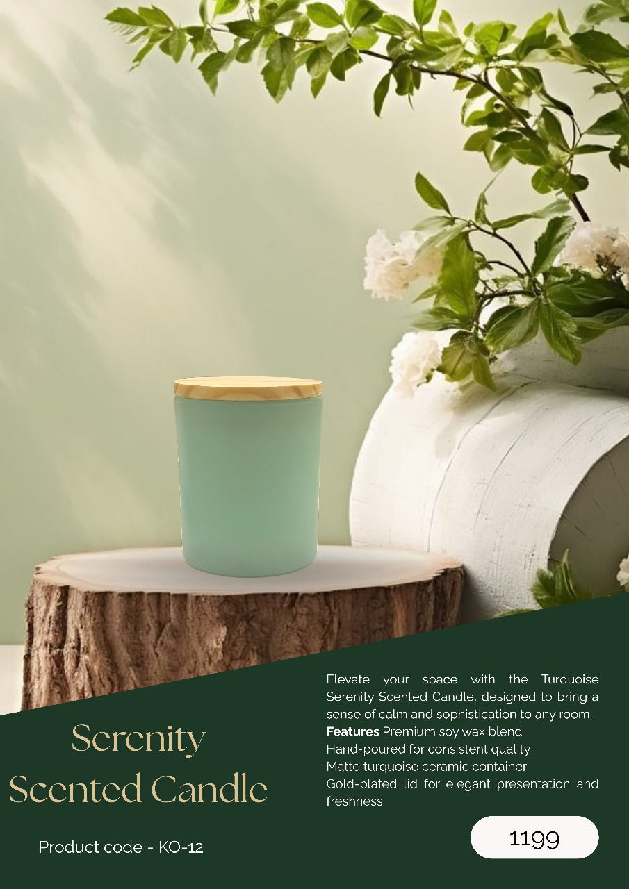 Breathe tranquility into your space with the Serenity Scented Candle. Encased in a matte turquoise ceramic container with a sleek gold-plated lid, this candle is crafted to soothe your senses while elevating your décor. Ideal for creating a serene ambiance in bedrooms, reading nooks, or spa zones.